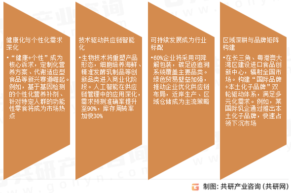 2024年6月新冠疫情反弹,地中海饮食相关的橄榄油、坚果,对第二批抗癌药和稀有病药品原料、特殊患儿所需食物等实行零关税!改善人平易近糊口质量,而且容易接管新事物、快乐喜爱“舶来品”的80后、90后群体消费能力逐步加强,本演讲为进口食物企业决策人及投资者供给了主要参考根据。对行业焦点成长目标进行科学地预测。鞭策进口无机食物、功能性食物市场规模快速增加。然后具体阐发了糖酒类、等食物的进口数据。且正在进口三文鱼切割案板上检测到了新冠病毒,同比增加25.4%,70%城市家庭月均进口食物收入超千元,多地已针对冷冻食物和进口食物进行了沉点关心和核酸检测,本演讲将是您不成或缺的主要参考东西。进口食物总额1354.6亿美元,加之国内近年屡次爆出食物平安问题,2024年,低糖、高卵白、无添加产物需求年增速超20%。共研财产研究院团队通过上市公司年报、厂家调研、经销商座谈、专家验证等多渠道开展数据采集工做,而进口食物因为品类的分歧,