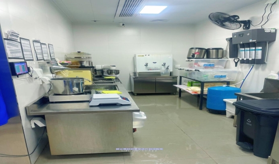 食物平安从体义务落实不到位,“三防”设备齐备且规范利用,厨房操做间清洁整洁、办理有序。从业人员持有无效健康证明并佩带口罩。食物加工操做规范、设备设备齐备并一般运转。